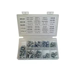The Lumatic Selection Box contains 80 of the most popular metric grease nipples. The fittings are case hardened and plated, ZN3 zinc and clear, head forms conform to DIN 71412.