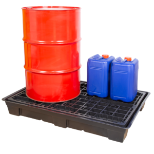 Remove IBC and empty spill pallet before moving Single IBC Spill pallet with removable platform