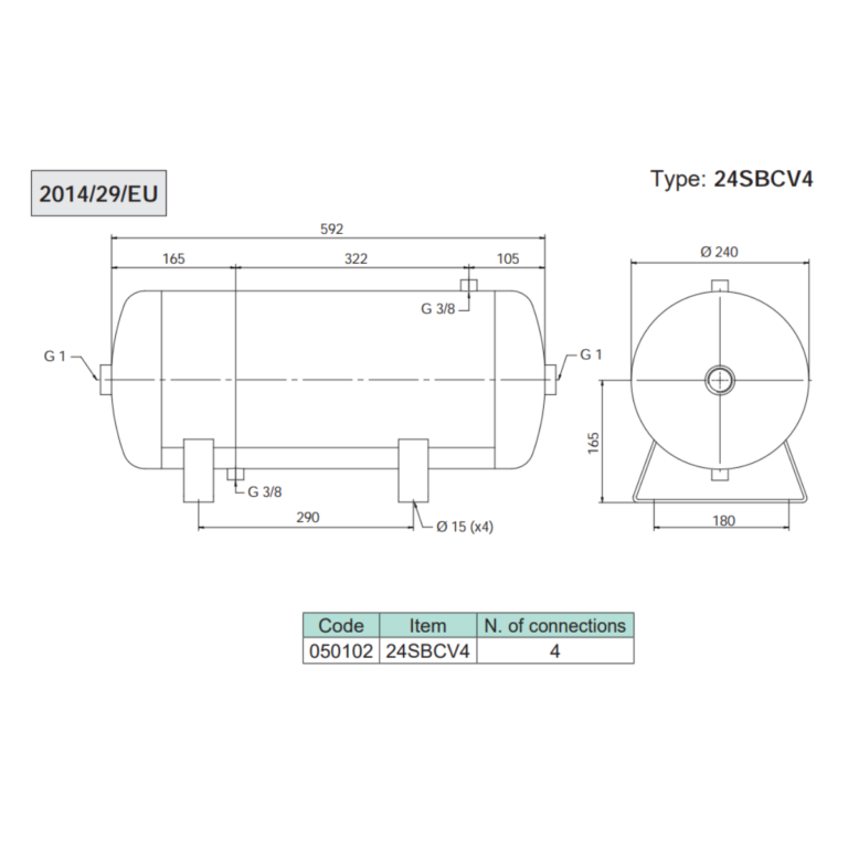 | 24SBCV4 | Air Reservoir ø240 x 592 H - G 1/2 | £299.80Ex. VAT£359.76Incl. VAT | £299.80Ex. VAT£359.76Incl. VAT |