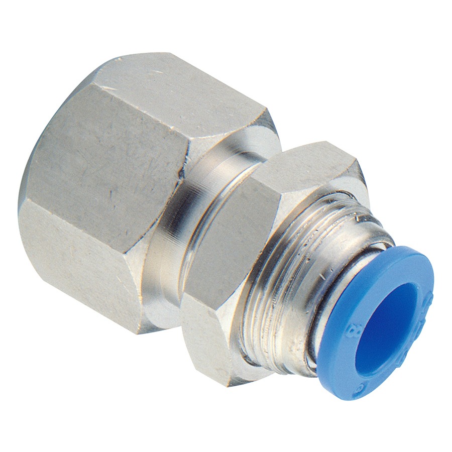 Homepage — Pneumatic Products — CDC Plastic Push-in Fittings — CDC Push-in Fittings - Metric — CDC Push-in Fittings - Tube to Thread — ONE-TOUCH PMF BSPP - FEMALE STRAIGHT BULKHEAD — 10mm OD X 1/2″ BSP CDC ONE-TOUCH BULK F STRAIGHT
