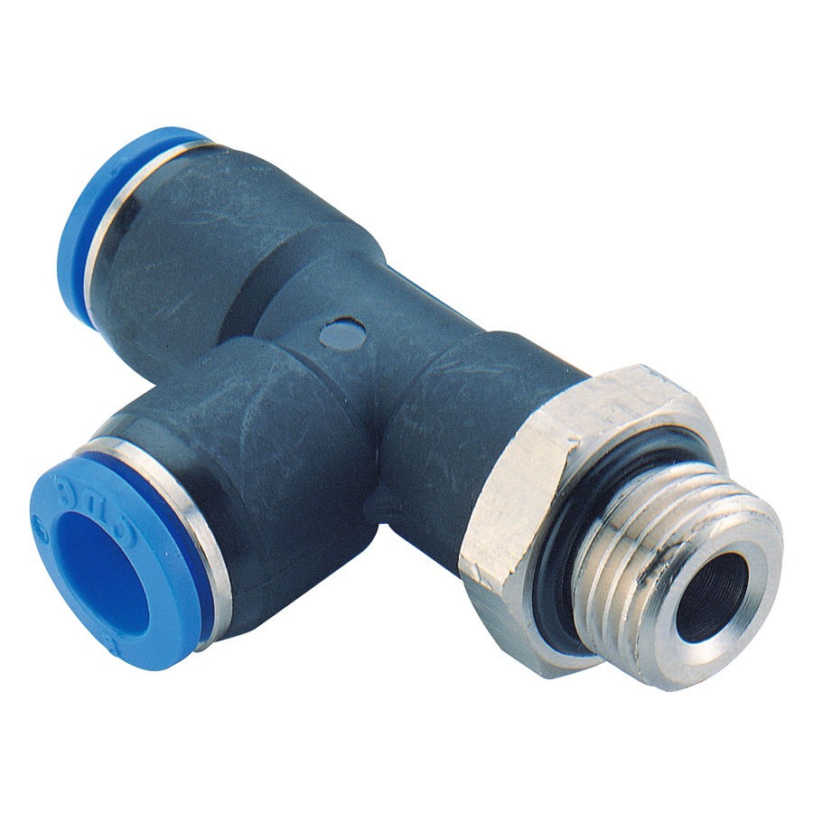 Homepage — Pneumatic Products — CDC Plastic Push-in Fittings — CDC Push-in Fittings - Metric — CDC Push-in Fittings - Tube to Thread — ONE-TOUCH PST BSPP - SWIVEL ROTATING MALE RUN TEE — 10mm OD X 1/4″ BSP C/W O-RING CDC ONE-TOUCH MALE RUN TEE