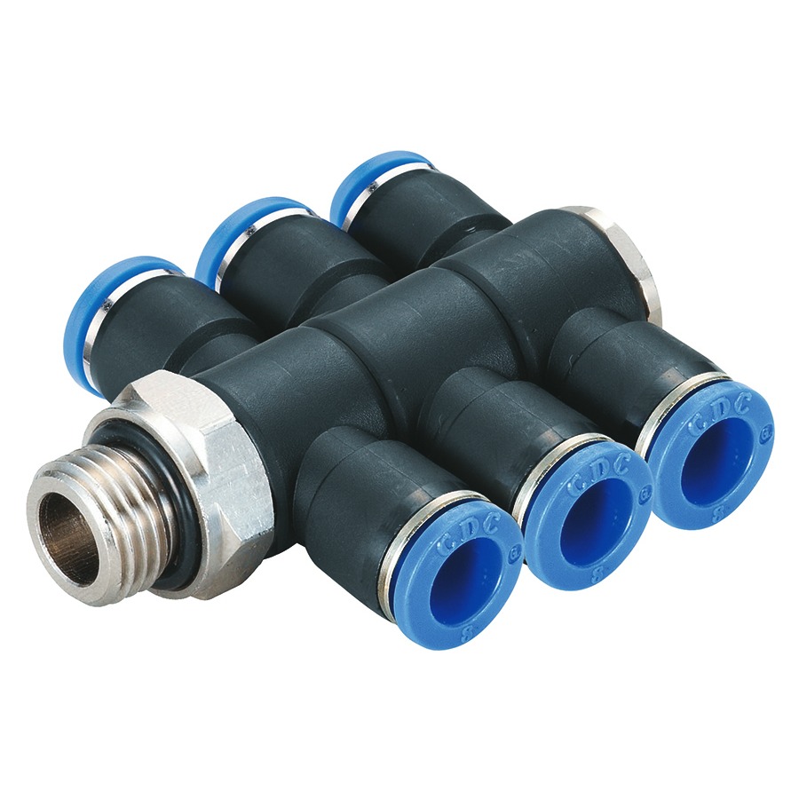 Homepage — Pneumatic Products — CDC Plastic Push-in Fittings — CDC Push-in Fittings - Metric — CDC Push-in Fittings - Tube to Thread — ONE-TOUCH PHT BSPP - TRIPLE UNIVERSAL TEE — 12mm OD X 1/2″ BSP C/W O-RING CDC ONE-TOUCH TRIPLE UNIV TEE