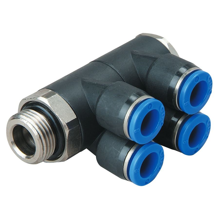 Homepage — Pneumatic Products — CDC Plastic Push-in Fittings — CDC Push-in Fittings - Metric — CDC Push-in Fittings - Tube to Thread — ONE-TOUCH PAT BSPP - DOUBLE BRANCH MALE BANJO — 12mm X 1/4″BSPP C/W O-RING CDC ONE-TOUCH D/BRANCH M/BANJO
