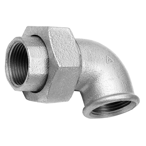 Homepage — Industrial Products — Ring Main Systems — Malleable Cast Iron Fittings — Galvanised — 90° Union Elbow–BSPP Female — 2″ BSPP FEMALE GALV UNION ELBOW