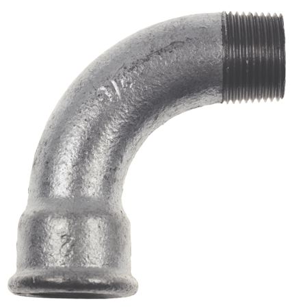 Homepage — Industrial Products — Ring Main Systems — Malleable Cast Iron Fittings — Galvanised — 90° Male X Female Equal Bend — 3/4″ BSPT/BSPP M/F 90 DEG LONG GALV BEND