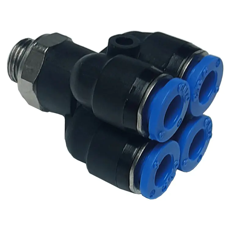 Homepage — Pneumatic Products — CDC Plastic Push-in Fittings — CDC Push-in Fittings - Metric — CDC Push-in Fittings - Tube to Thread — ONE-TOUCH PXT BSPP - MALE DOUBLE Y — 4mm OD x 1/8″BSPP Male Double Y