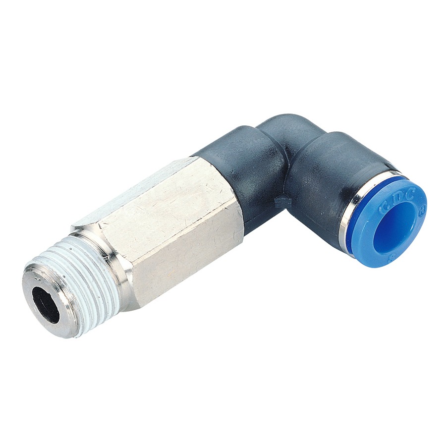 Homepage — Pneumatic Products — CDC Plastic Push-in Fittings — CDC Push-in Fittings - Metric — CDC Push-in Fittings - Tube to Thread — ONE-TOUCH PLL BSPT - SWIVEL ROTATING EXTENDED MALE ELBOW — 4mm OD X M6x1.0 THREAD CDC ONE-TOUCH M EXTENDED ELBOW