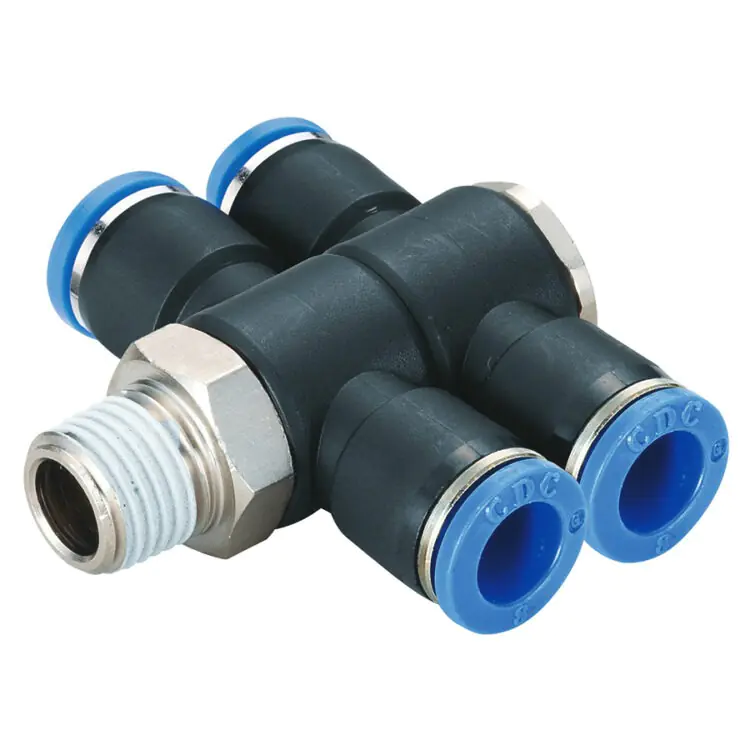 Homepage — Pneumatic Products — CDC Plastic Push-in Fittings — CDC Push-in Fittings - Metric — CDC Push-in Fittings - Tube to Thread — ONE-TOUCH PHT BSPT - DOUBLE UNIVERSAL TEE — 6mm OD X 1/2″BSPT THREAD CDC ONE-TOUCH DOUBLE UNIV TEE