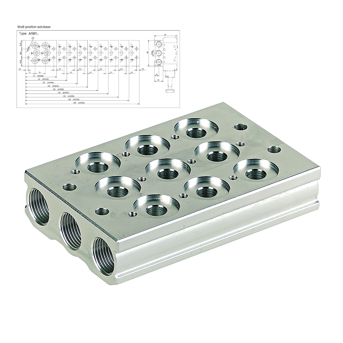 Multi Position Sub Bases – with fixed position, for valve series A1, 3 & 5 Ways.