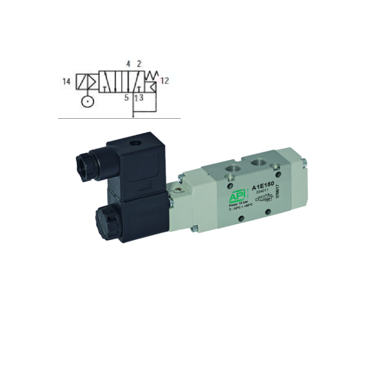 Homepage — Pneumatic Products — Pneumatic Valves, Mounts & Accessories — API Pneumatic Valves, Mounts & Accessories — 1/8" 5/2 & 5/3 Electrically Operated 125 5 Way Valves — 5/2 Solenoid/Spring Air Pilot 1/8" Electrically Operated Valve — 5/2 Solenoid/Spring Air Pilot 1/8″ Electrically Operated Valve