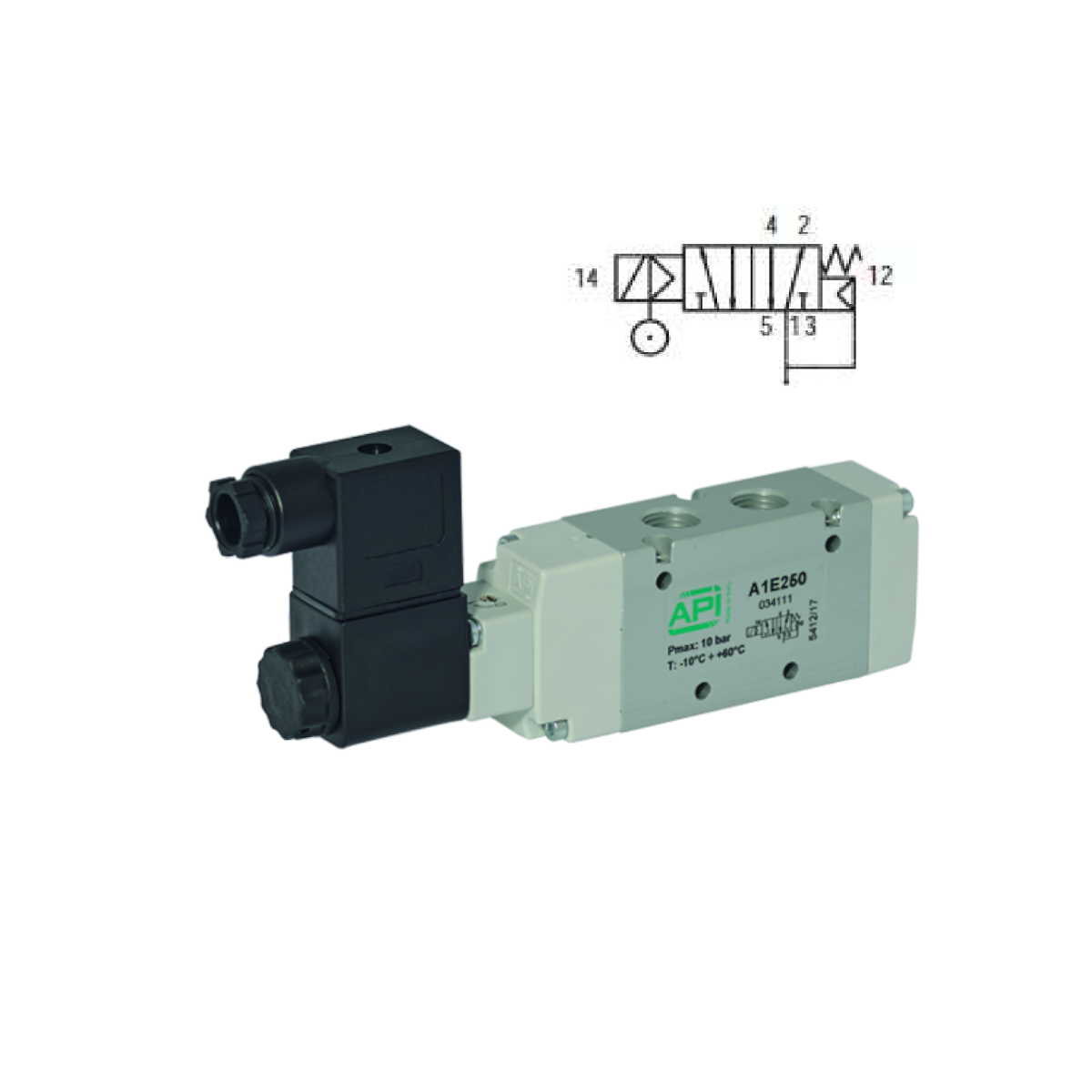 Homepage — Pneumatic Products — Pneumatic Valves, Mounts & Accessories — API Pneumatic Valves, Mounts & Accessories — 1/4" 5/2 & 5/3 Electrically Operated 5 Way Valves — 1/4" 5/2 Solenoid/Spring & Air Pilot Electrically Operated Valve — 1/4″ 5/2 Solenoid/Spring & Air Pilot Electrically Operated Valve