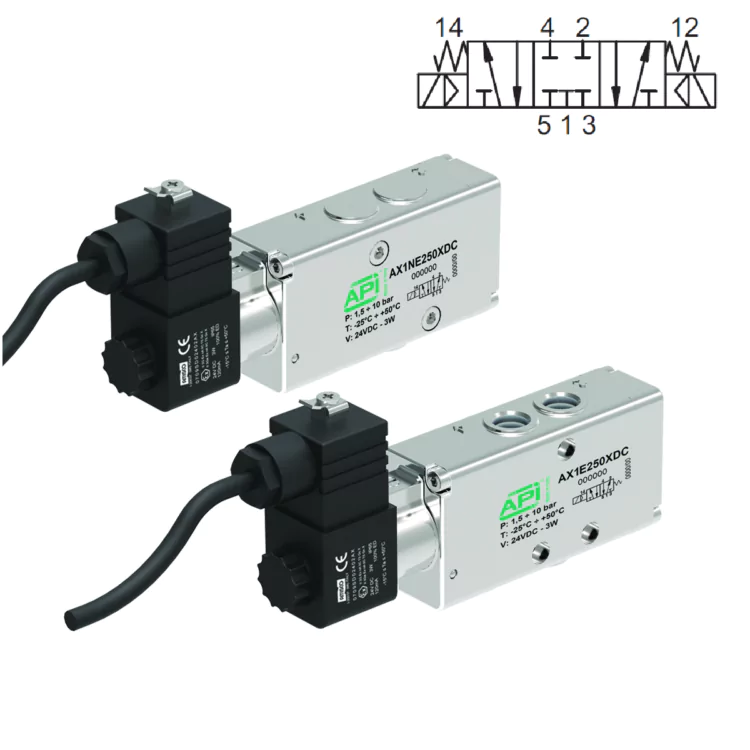 New series of “AX” valves with functions 3/2 – 5/2 – 5/3 connection in line on the body or NAMUR. Electric and electric servo pilot.