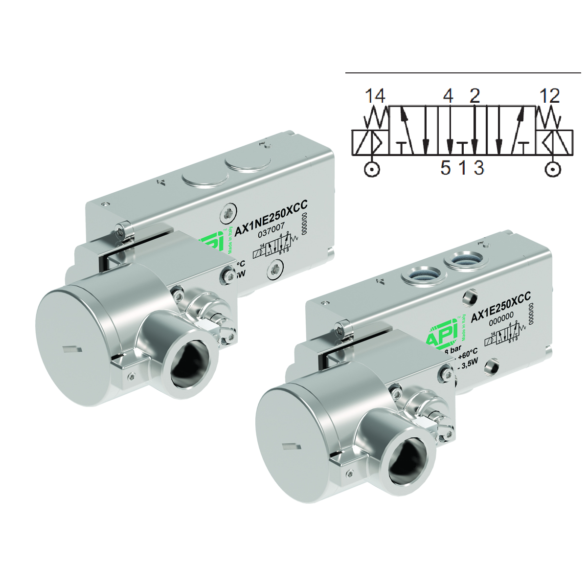 New series of “AX” valves with functions 3/2 – 5/2 – 5/3 connection in line on the body or NAMUR. Electric and electric servo pilot.