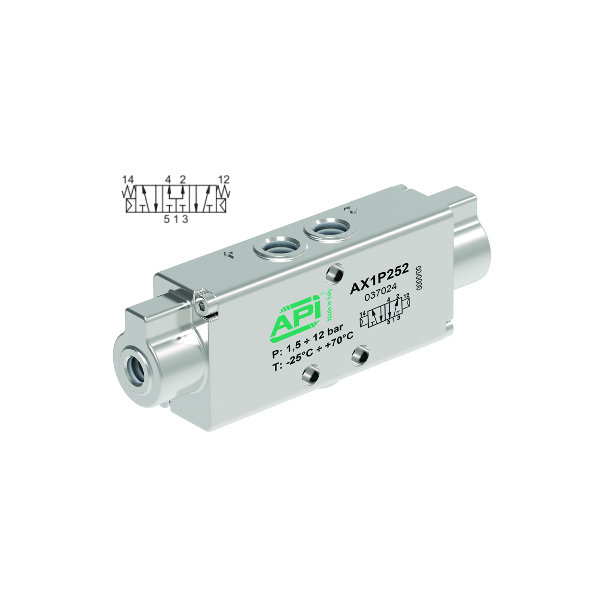 New series of AX valves with functions 5/2 & 5/3 connectors in-line on the body, electric and electric servo pilot.