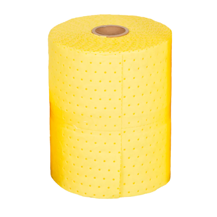 Chemical Roll. Plain Medium-weight chemical absorbent roll. Safely absorbs acids, alkalis and strong chemicals for easy clean-up of hazardous spills and leaks. Easily covers large areas to clean up spills and leaks quickly and cleanly. Tough and hard-wearing finish for use in industrial applications. Perforated across width and along length for easy tearing and maximum economy.
