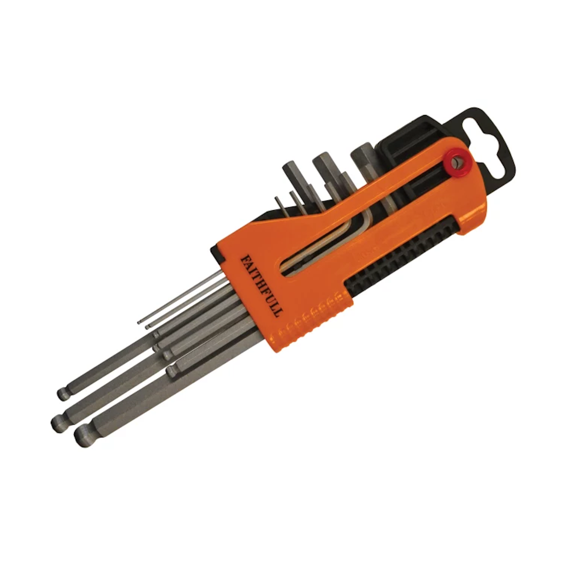 These Faithfull L-shaped long hex keys have ball ends that permit up to a 30° offset alignment for greater access to difficult to reach fixings. Their longer blades provide both access to deeper set fixing and additional torque if needed when fitting or removing bolts.
