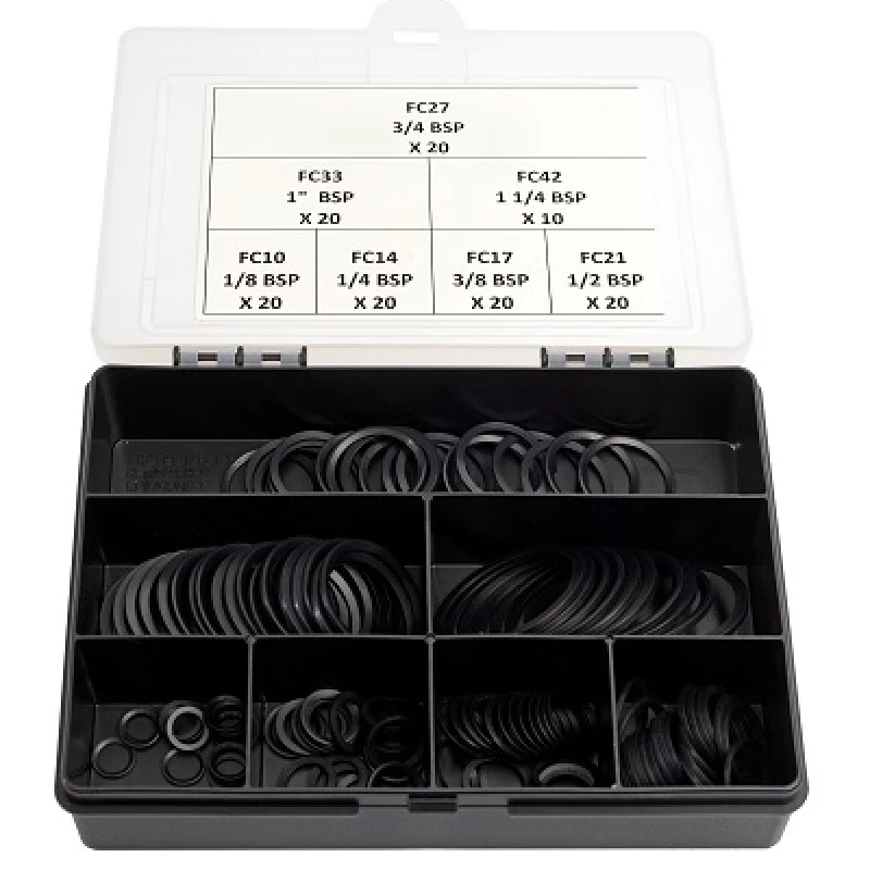 Suitable for Imperial Threads. Contains 20 off each to suit 1/8; 1/4; 3/8; 1/2; 3/4; 1 BSP; 10pcs 1-1/4 BSP in NBR 85 Shore.