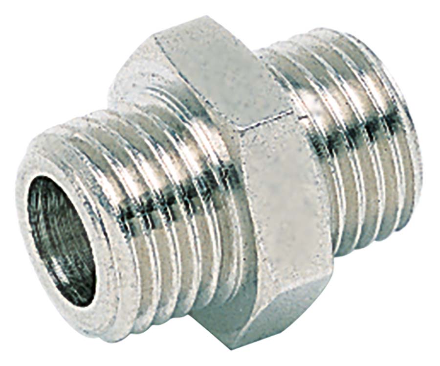 Homepage — Industrial Products — Hose Tail And Adaptors — Equal Connector — Aignep Equal Connector Metric Male / BSPP — M5 MALE THREAD BRASS EQUAL PLATED CONNECTOR