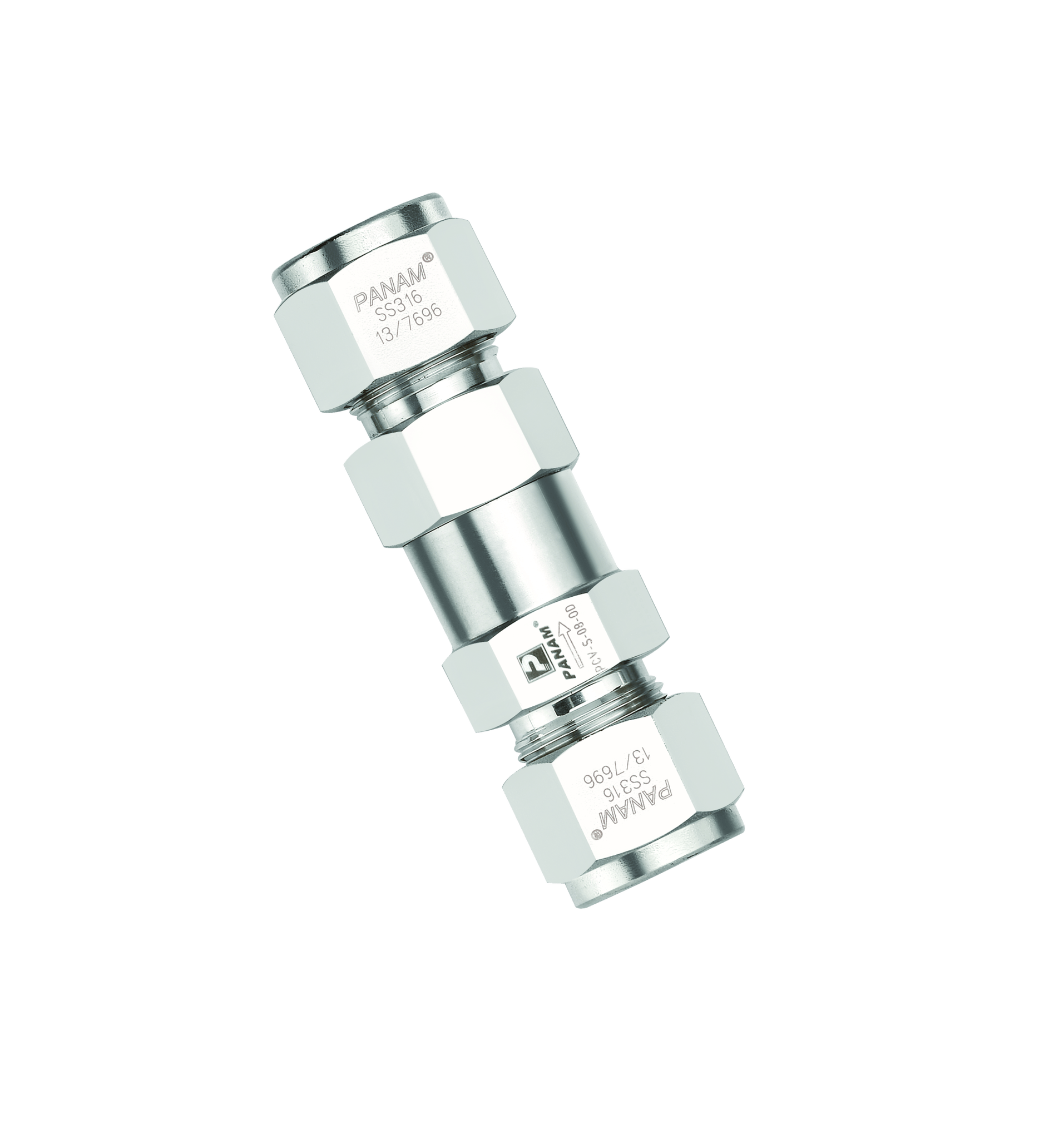 Panam, Check Valve, 1/2", Tube OD x Tube OD, 316 Stainless Steel PRODUCT CODE - PCV-08-SS-OD