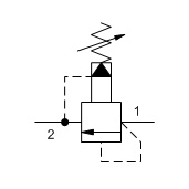 Pilot-operated, balanced-piston relief cartridges are normally closed pressure regulating valves. When the pressure at the inlet (port 1) reaches the valve setting, the valve starts to open to tank (port 2), throttling flow to regulate the pressure. These valves are accurate, have low pressure rise vs. flow, they are smooth and quiet, and are moderately fast.