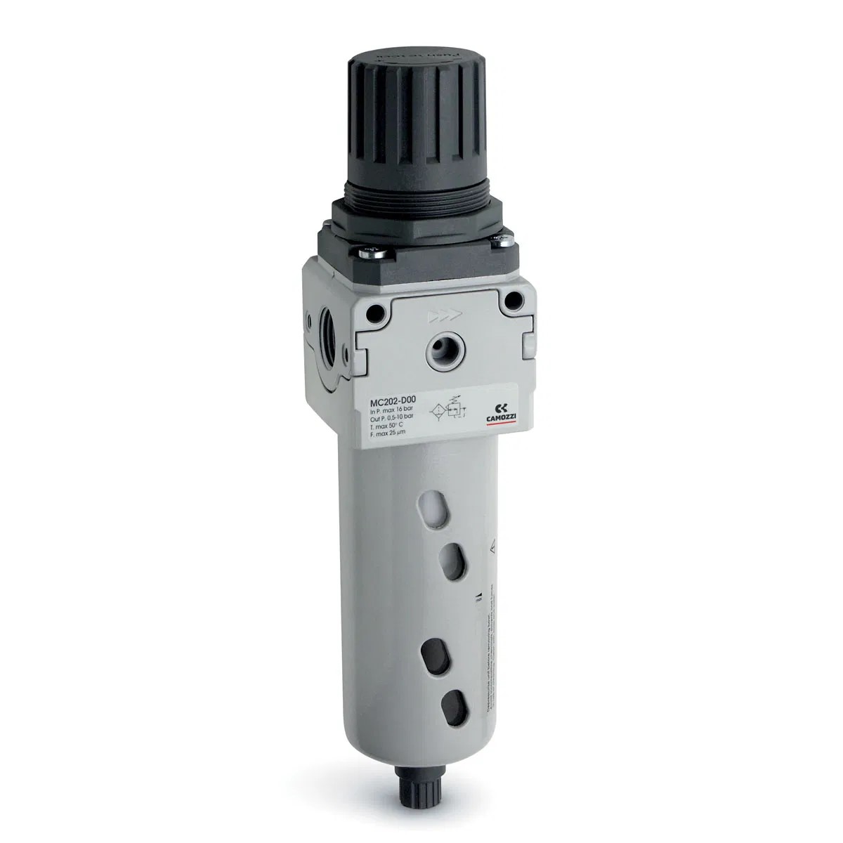 Perfect for manufacturing, automation, air tool systems, and pneumatic control panels, the Camozzi Series MC Filter-Regulators ensure consistent air quality and pressure, enhancing equipment reliability and reducing maintenance downtime.