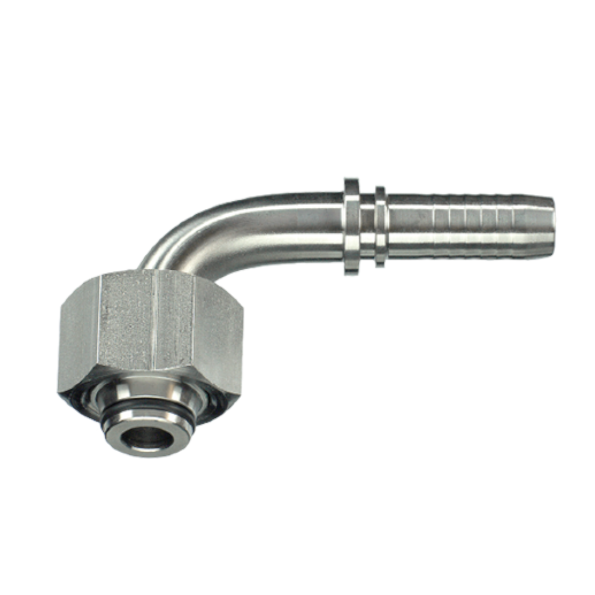 Stainless Steel Metric 90º Swept Female (S Series) Hose Insert For Hose Assemblies PRODUCT CODE - MEGA-DKOS-06-90-DN_06-2210