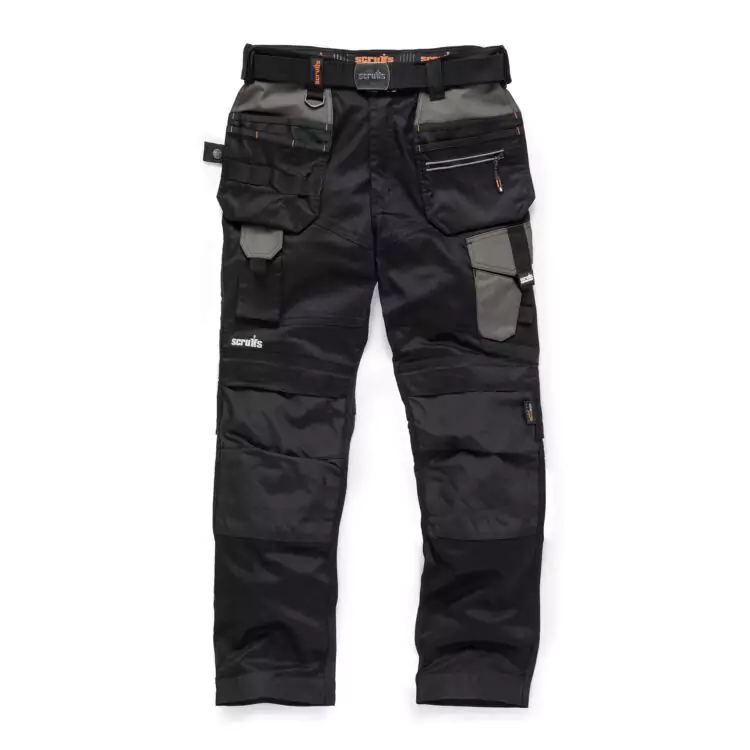 Heavy duty Ballistic Cordura® fabric reinforcements and easy-access holster pockets ensure lasting performance. Slim fit design with flexible stretch fabric. Mesh ventilation panels and top-loading knee pad pockets with two positions provide lasting comfort. Includes an adjustable clip belt and reflective detailing.