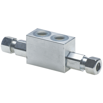 • Standard 12mm Fittings: The valve is equipped with 12mm fittings that comply with DIN 2353 standards, ensuring compatibility with a wide range of hydraulic systems and components.