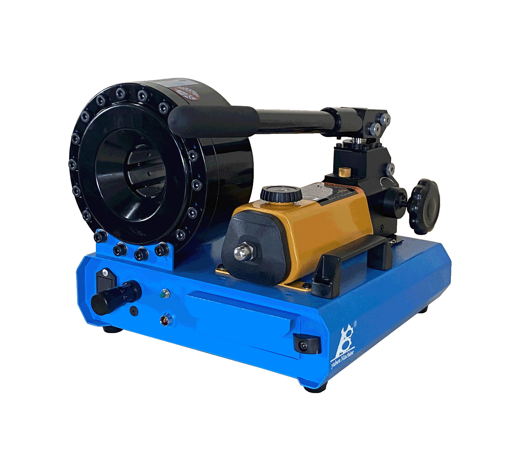 The YB-P16HP swaging machine is able to crimp from 1/4″ to 3/4″ 2 wire hose as standard, additional dies can be supplied to crimp even smaller hoses if needed.
